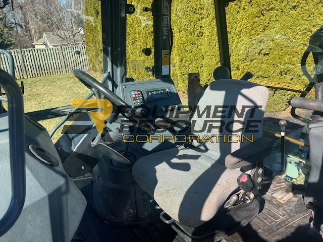 Description: enclosed cab, heat/AC, work lights, joystick controls, auxiliary hydraulics, tilt wheel, extend-a-hoe, 4×4, includes 24″ rear digging bucket