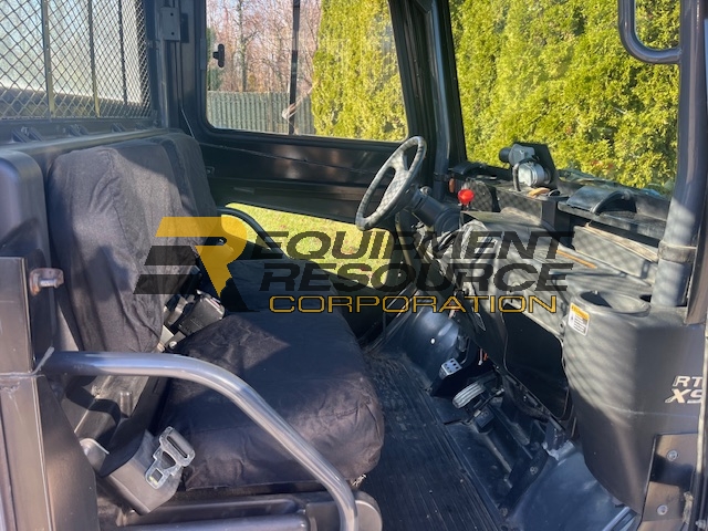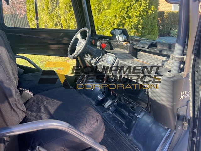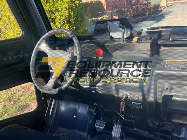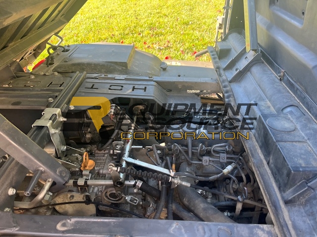 Description: cab, heat, wiper, sliding windows, work lights, front and rear hitch, front brush guard, 4×4, Kubota diesel engine, manual dump bed