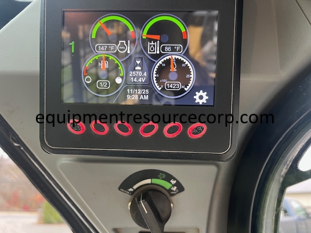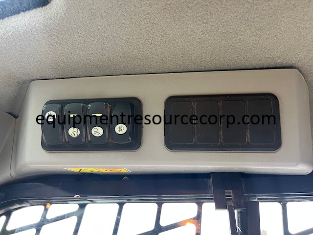 Description: enclosed cab, heat/AC, work lights, radio, auxiliary hydraulics, hydraulic quick connect bucket system, includes general purpose bucket