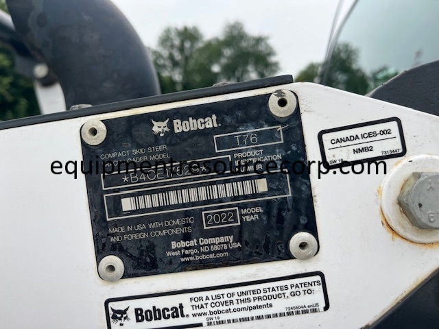 2022 Bobcat T76 Skid Steer-$38,500.00